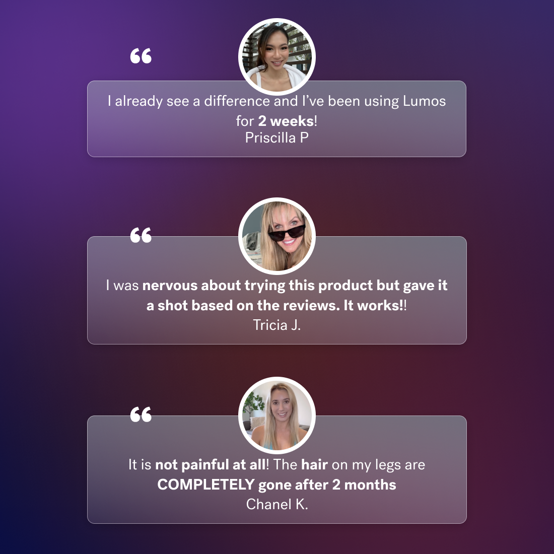 "I spent years frustrated with shaving and salon appointments. Lumos is the first thing that worked for me, and I can use it at home!"