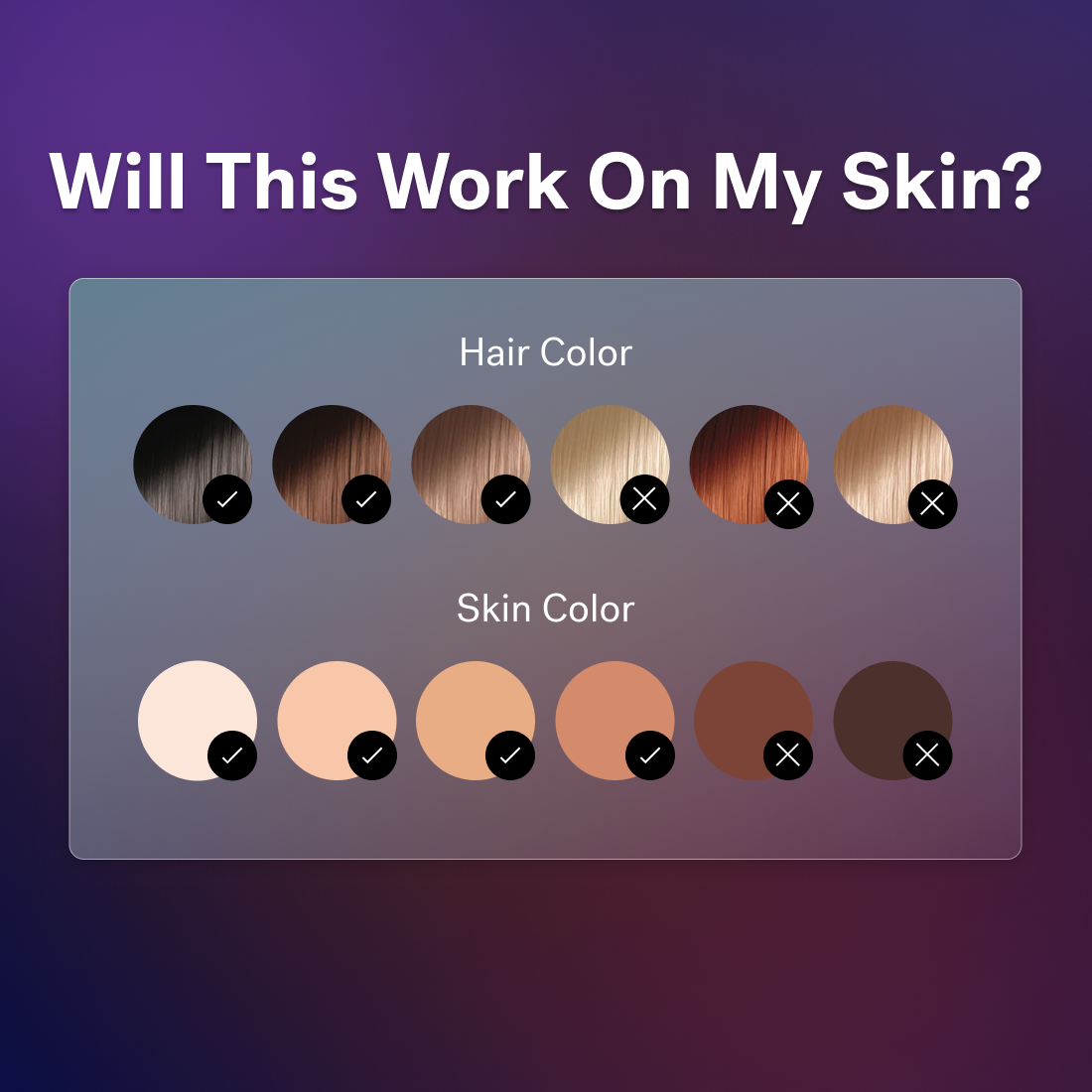 *IPL technology needs a contrast between the melanin in your hair and skin, so it's not universally safe for all hair and skin combinations. Completing a Skin Safety Test before starting treatment is essential, with instructions provided.